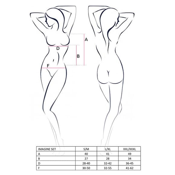 Комплект білизни IMAGINE SET OpenBra black XXL/XXXL - Passion: ліф - міні-сорочка, трусики з оборками Незабаром ви матимете можливість відчути витончений шарм і неповторну елегантність з комлпектом білизни IMAGINE SET OpenBra black XXL/XXXL від Passion. Цей комплект визначається своїм спокусливим дизайном та високою якістю матеріалів, з яких він виготовлений. Перш ніж перейти до детального опису кожного окремого елемента, варто зазначити, що цей комплект призначений для жінок з розміром грудей XXL або XXXL. Почнемо з ліфа - міні-сорочки. Він має відкритий верхній край, заснований на ідеї OpenBra, що додає особливий шарм і робить його неперевершеним вибором для спокусливих і інтимних моментів. Ліф забезпечує гарну підтримку грудей і підкреслює їх привабливу форму, завдяки чому ви будете відчувати себе впевнено і привабливо. Наступним елементом комплекту є трусики з оборками. Вони мають елегантний дизайн з ніжними оборками, які прикрашають задню частину трусиків і надають їм більш жіночного вигляду. Зручна посадка забезпечує максимальний комфорт протягом усього дня. Також варто зазначити, що комплект білизни IMAGINE SET OpenBra black XXL/XXXL від Passion створений з високоякісних матеріалів, що забезпечують надзвичайну м'якість і ніжність на шкірі. Цей комплект доповнить ваш гардероб неперевершеним стилем і спокусливістю. Придбання комплекту білизни IMAGINE SET OpenBra black XXL/XXXL від Passion - це незабутній крок до створення неповторного образу, який підкреслить вашу жіночність та виразність. Навіть у найінтимніших моментах ви будете себе відчувати комфортно і стильно з цим чарівним комплектом білизни.